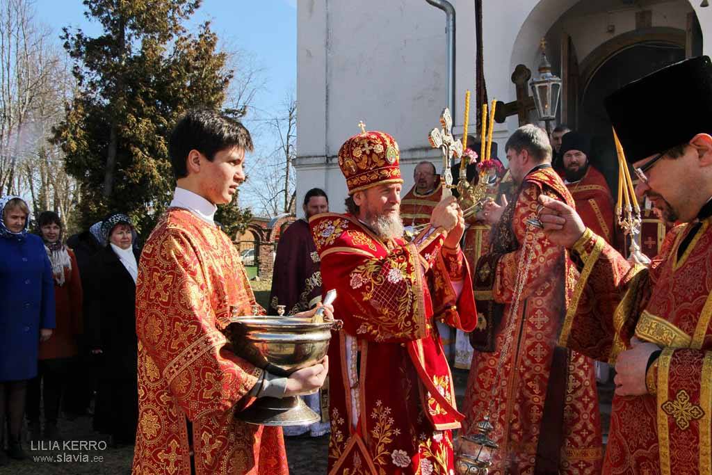 Его Преосвященству сослужили настоятель храма святителя Николая иеромонах Илия (Сорокатый), настоятель храма Рождества Пресвятой Богородицы в Алайыэ протоиерей Владимир Соколов, настоятель храма Сретения Господня в г. Йыгева иеромонах Серафим (Лапков), настоятель храма Покрова Пресвятой Богородицы в Нина иерей Вячеслав Дмитриев, настоятель храма Богоявления Господня в Лохусуу иерей Александр Силов, настоятель храма Сретения Господня в Варанья иерей Петр Михайлов. Диаконский чин возглавил клирик Нарвского Воскресенского собора диакон Алексий Смирнов.