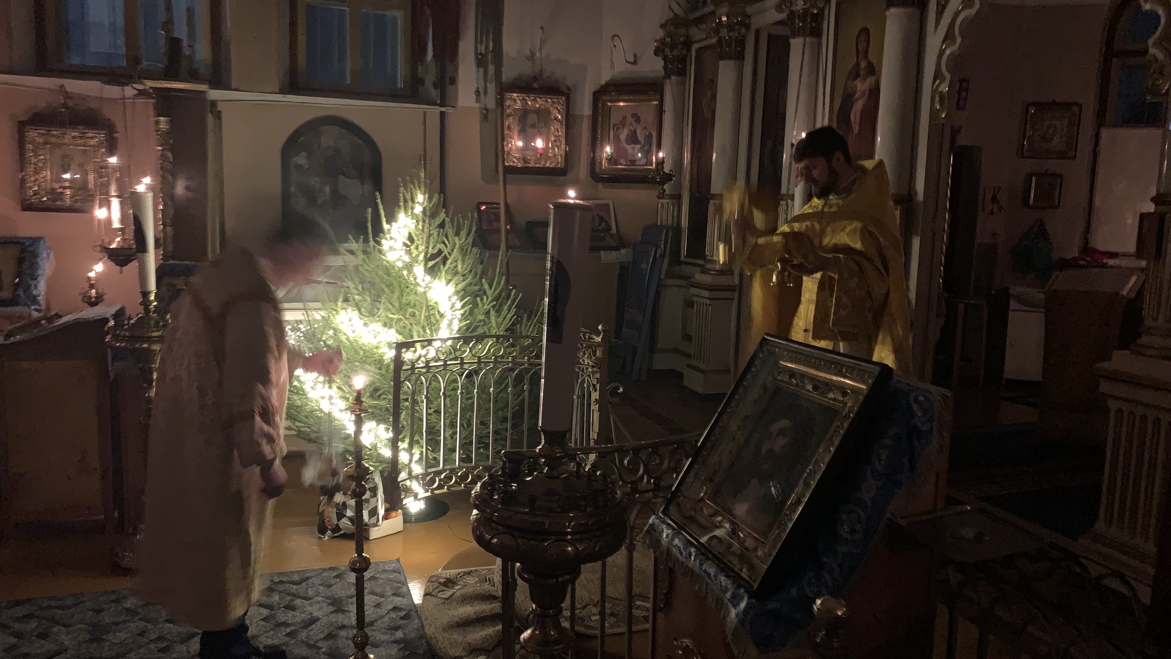 В Воскресение, 1 января 2023 года, Неделя 29-я по Пятидесятнице, перед Рождеством Христовым, святых отец, государственный новый год, в храме рождества Богородицы деревни Алайыэ была совершена ночная Божественная Литургия.
