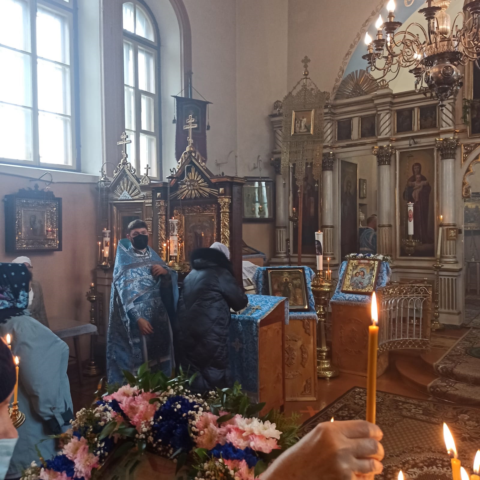 Священнослужители совершили чин славления перед иконой праздника Рождества Пресвятой Богородицы и Крестный ход вокруг храма.
