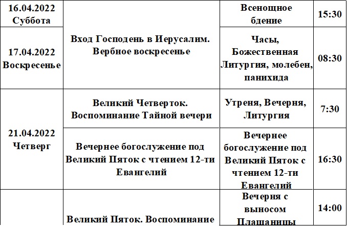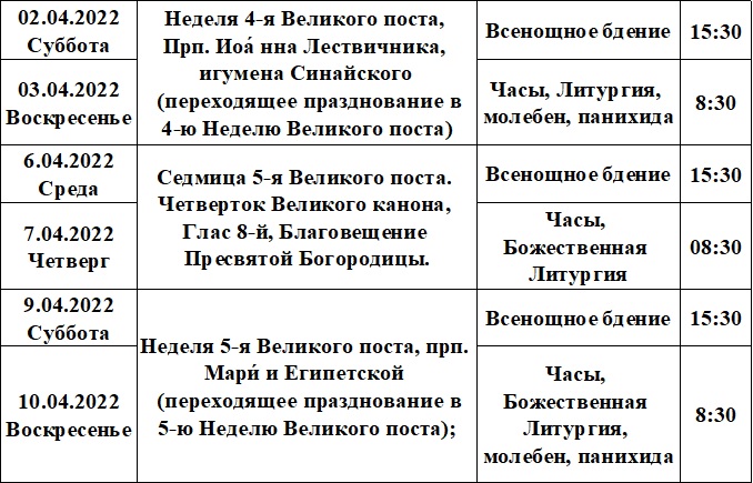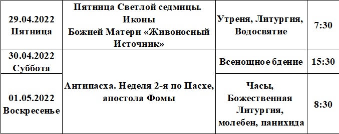 Расписание богослужений на Апрель в храме Рождества Пресвятой Богородицы деревни Алайыэ