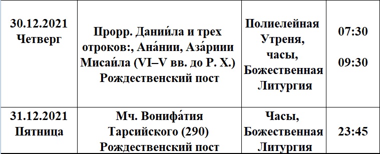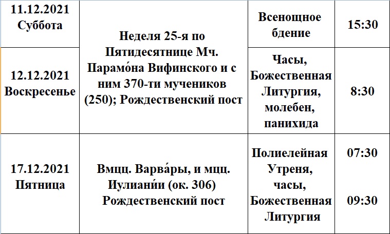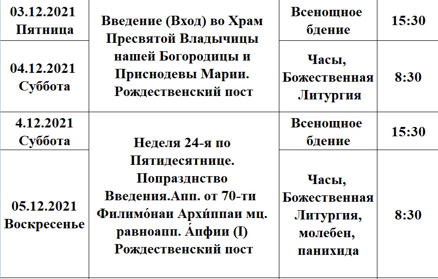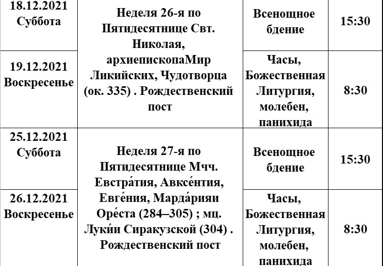 Расписание богослужений на декабрь в храме Рождества Пресвятой Богородицы деревни Алайыэ