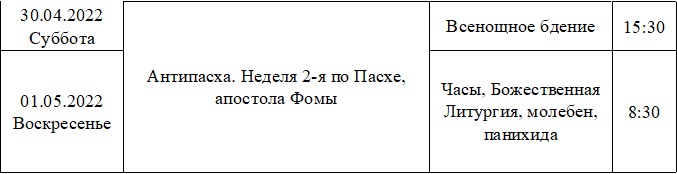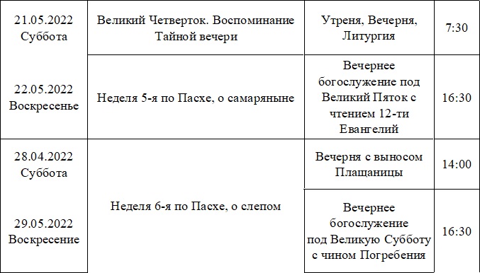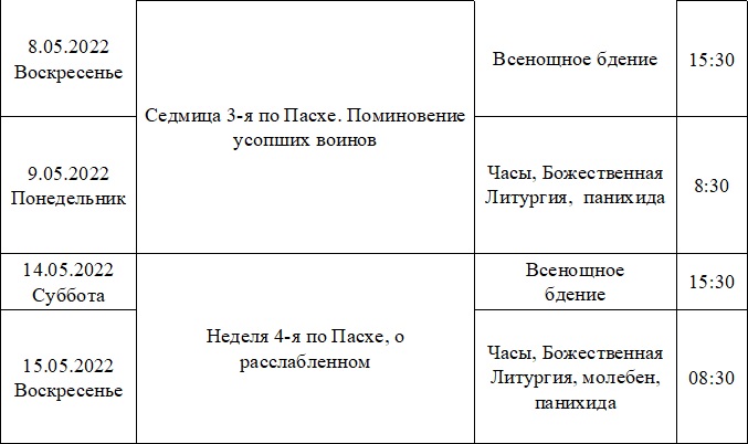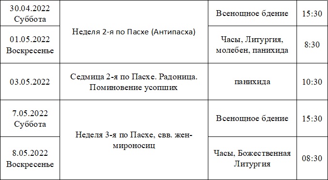 Расписание богослужений на Май в храме Рождества Пресвятой Богородицы деревни Алайыэ