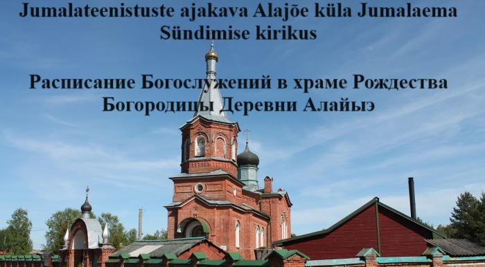 Jumalateenistuste ajakava Alajõe küla Jumalaema Sündimise kirikus