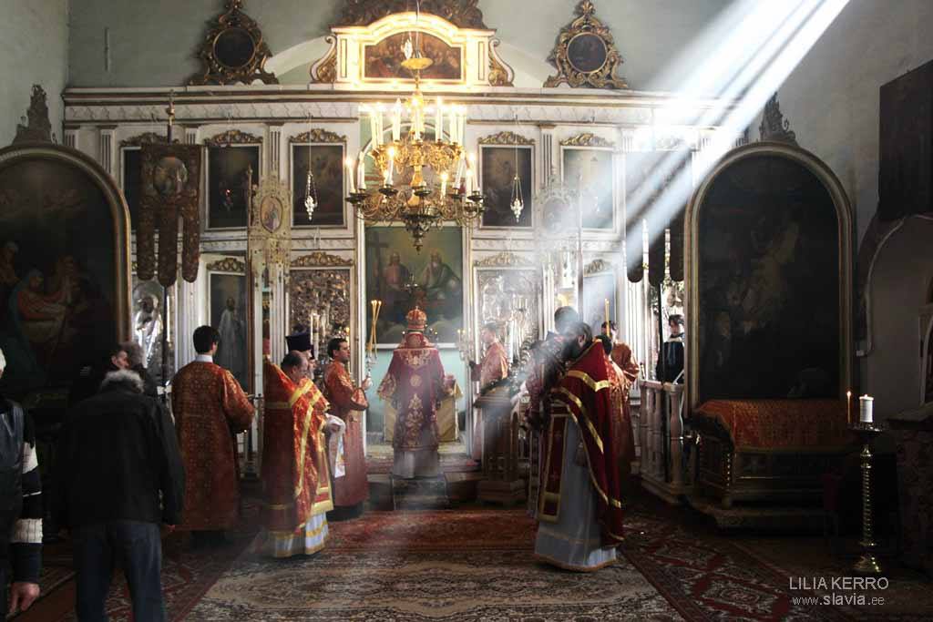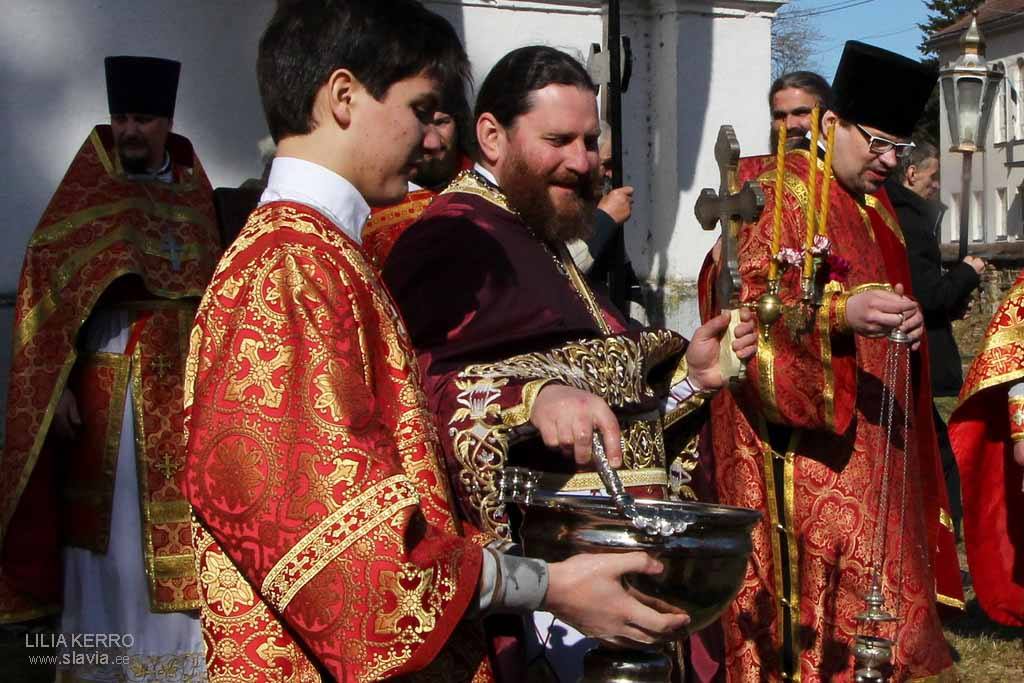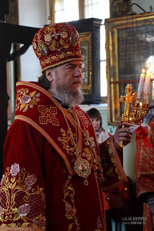 Его Преосвященству сослужили настоятель храма святителя Николая иеромонах Илия (Сорокатый), настоятель храма Рождества Пресвятой Богородицы в Алайыэ протоиерей Владимир Соколов, настоятель храма Сретения Господня в г. Йыгева иеромонах Серафим (Лапков), настоятель храма Покрова Пресвятой Богородицы в Нина иерей Вячеслав Дмитриев, настоятель храма Богоявления Господня в Лохусуу иерей Александр Силов, настоятель храма Сретения Господня в Варанья иерей Петр Михайлов. Диаконский чин возглавил клирик Нарвского Воскресенского собора диакон Алексий Смирнов.