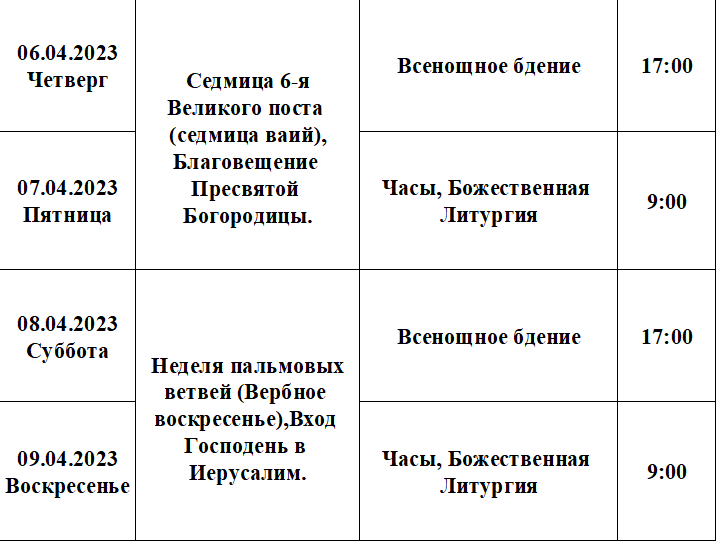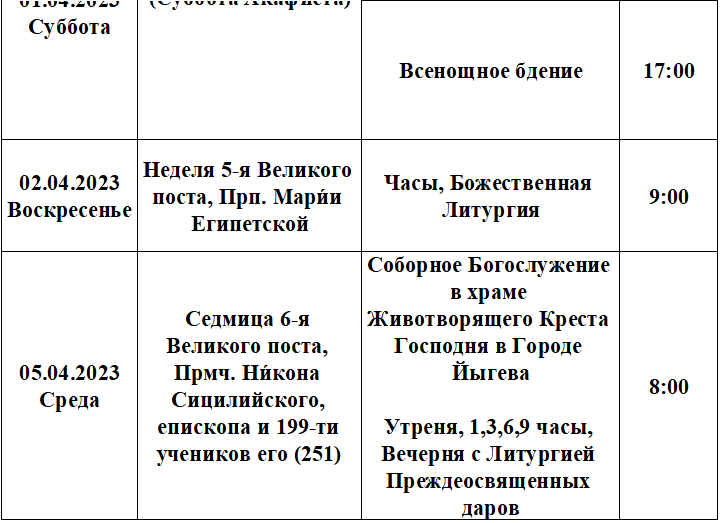 Расписание богослужений В храме Святителя Николая в городе Муствээ и соборных Богослужений на приходах Причудия
